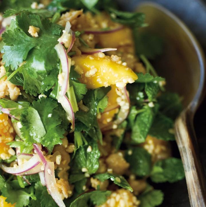 濃密なマンゴーの甘さと、こんがり炒めたひき肉、フレッシュなハーブ、ナンプラーが調和し、後を引く味わいに。