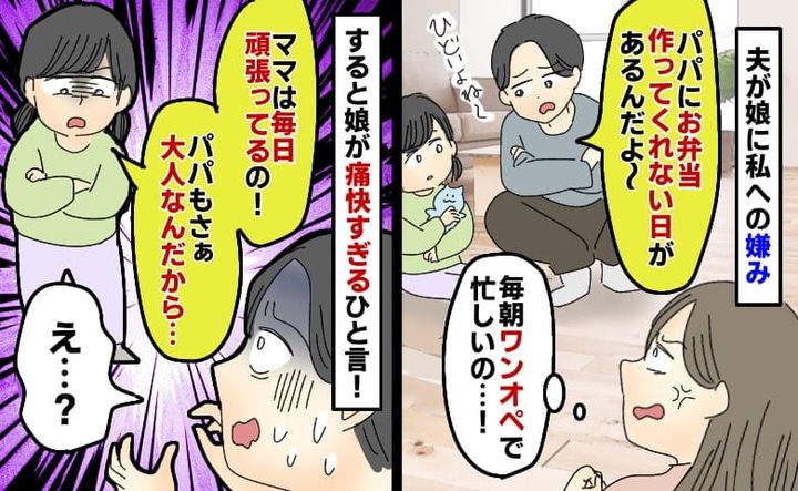 夫が10歳の娘に向かって私への文句「私はワンオペで毎朝大変なの…!」すると娘から夫へ痛快すぎる反撃