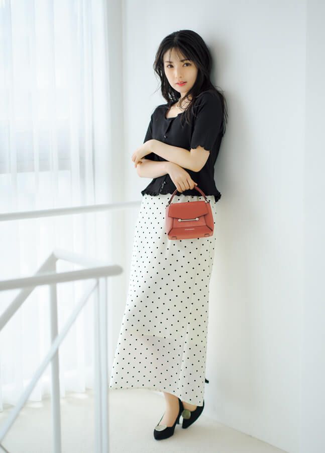 カットソー(アンサンブル価格)¥10,989/PROPORTION BODY DRESSING スカート(トップス付き)¥15,400/31 Sons de mode(ダブルエー) ネックレス¥23,100/プラス ヴァンドーム バッグ¥79,200/STRATHBERRY 靴¥7,700/ダブルエー オリエンタルトラフィック(ダブルエー)