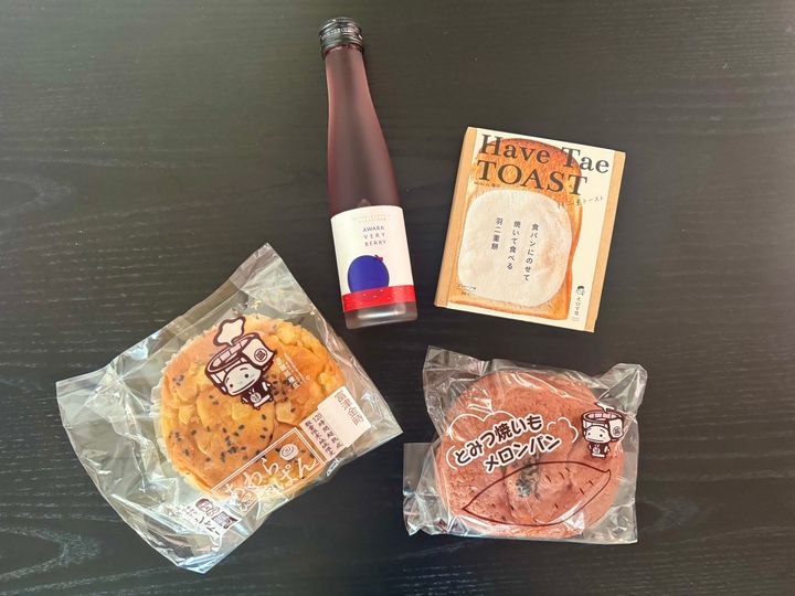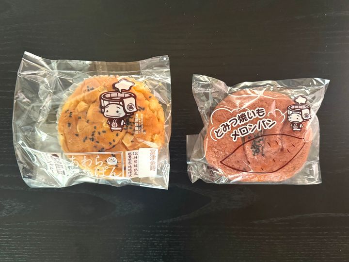 ふわふわした食感の「あわら温泉ぱん」と、とみつ金時の甘さをより感じる「とみつ焼いもメロンパン」。