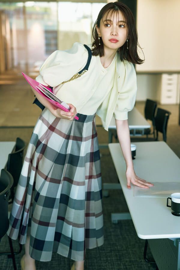 品のいいブリティッシュチェックでオフィス向きのきちんと感が♡