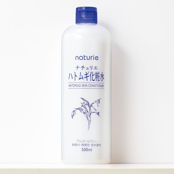 天然保湿成分ハトムギエキス配合。さっぱりしたテクスチャーで肌にぐんぐん浸透。潤いある明るい肌に。ナチュリエ ハトムギ化粧水 500ml ¥748〈編集部調べ〉(イミュ)