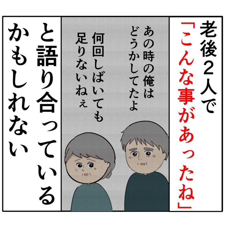 「老後2人で『こんな事があったね』と語り合っているかもしれない」とめいさんは思いました。今の時点ではろみ緒さんとやり直すことはまだ考えられないものの、ろみ緒さんを許せる日が来てまた一緒に暮らす未来もあるのかもしれないと思えてきためいさんです。