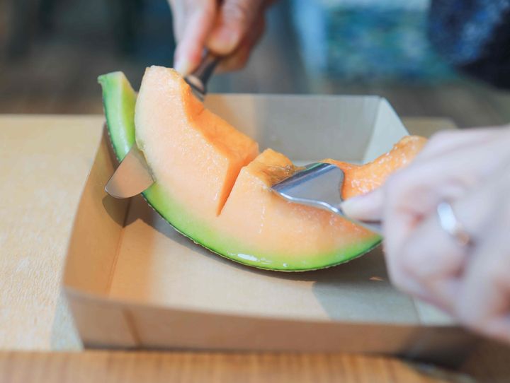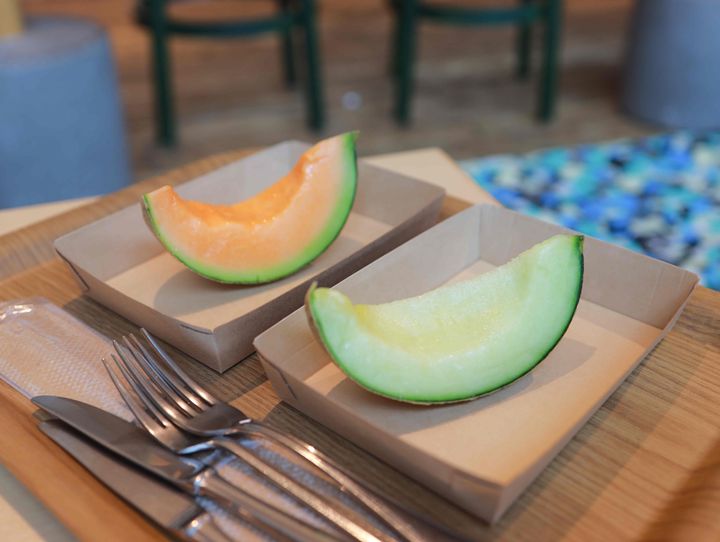 メロンは、そのままかぶりついて食べるのもよし、ナイフ・フォークでカットしていただくもよし。ちょうどいい熟し具合ですごく美味しかったです!