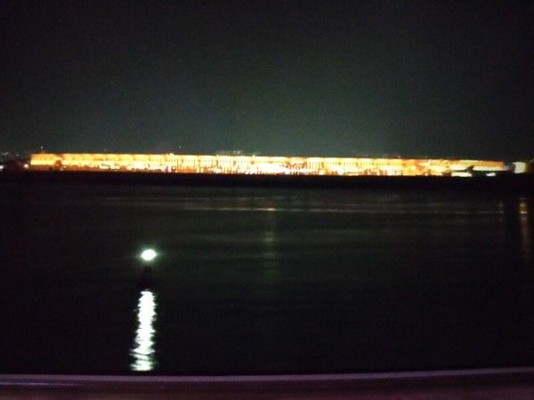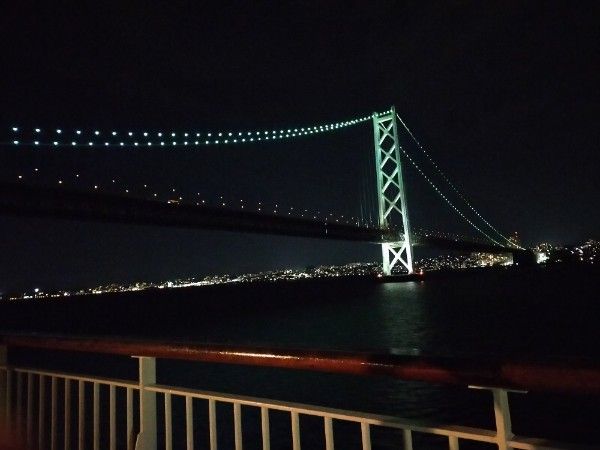 また出航から2時間半くらいすると、ライトアップされた明石海峡大橋の下をくぐり抜けます。