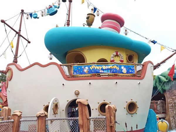 トゥーンタウンにある「ドナルドのボート」には、誕生日限定のデコレーションがお目見え。