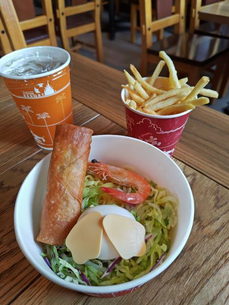 ゆず塩風味のさっぱりとした冷麺に、春巻きと有頭エビ、さらにドナルドの