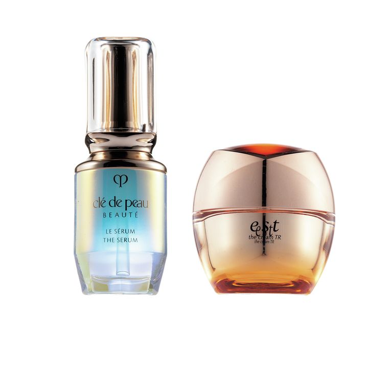 最終日は、肌にご褒美をあげて。瞬時に潤うクレポの超名品、ル・セラムを化粧水の後にオン。お守りコスメのエストのクリームで仕上げて、翌日に備えます。