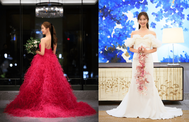 軽い気持ちで試着したのに、どことなく韓国テイストも感じられるような唯一無二のドレスだなぁって心を奪われてしまった。なによりもパレスホテル東京のチャペルと絶対に相性がいい! 披露宴のコンセプトにはフィットしないけど……。