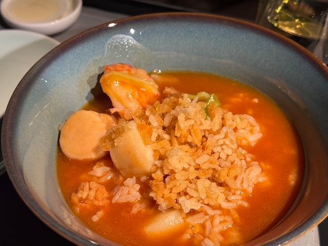 というロブスターを使われているおこげ入りのリゾット! サーブされたシャンパンと合わせると機内食とは思えないほど贅沢な時間に。
