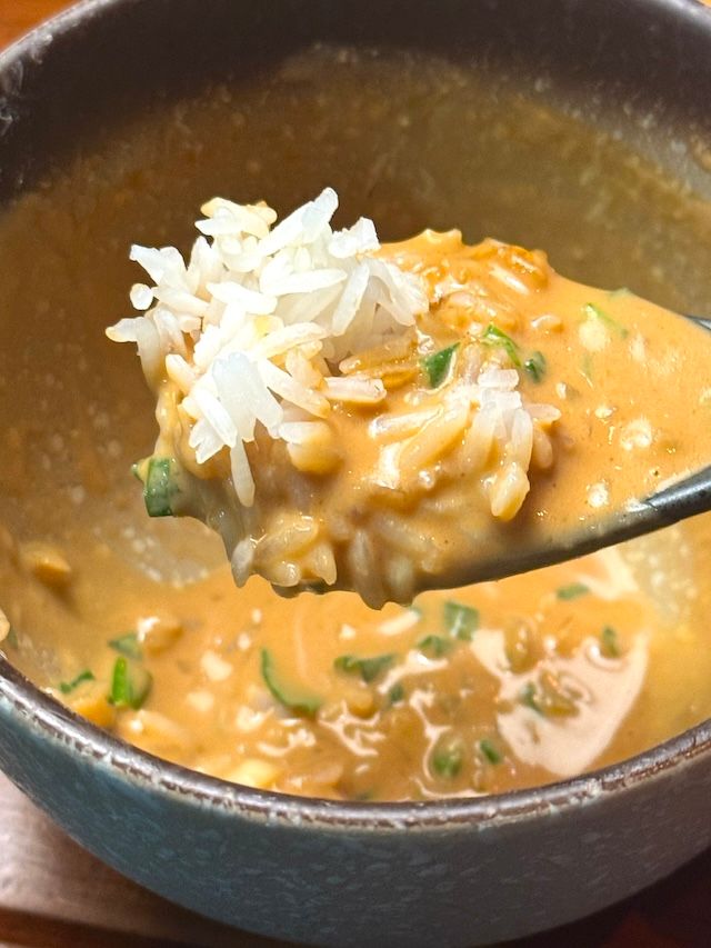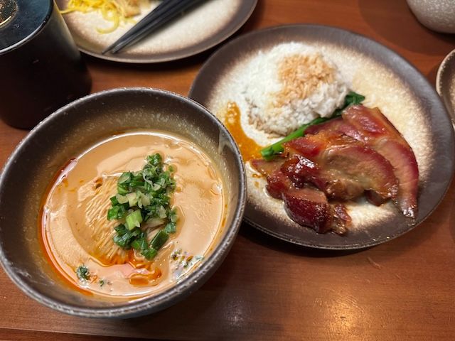 人気メニューは濃厚なゴマだれの担々麺。思った以上にドロッとしたとろみのスープは、細い麺に汁が絡まり濃厚な味を堪能することができます。筆者のおすすめは、ここにご飯を入れること。クリスピーポークライスを頼んでご飯を汁に入れて、クリスピーポークを付け合わせのおかずにすると、最高においしくてやみつきになりました。