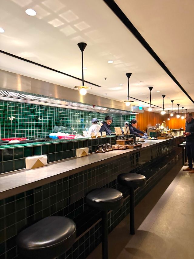ラウンジに足を踏み入れると、落ち着いた木のインテリアと間接照明が広がり、まるで高級ホテルのロビーのような雰囲気に包まれています。ダイニングエリアでは点心や麺類などの温かい料理をオーダー形式で楽しめ、バリスタが丁寧に淹れてくれるコーヒーも魅力。