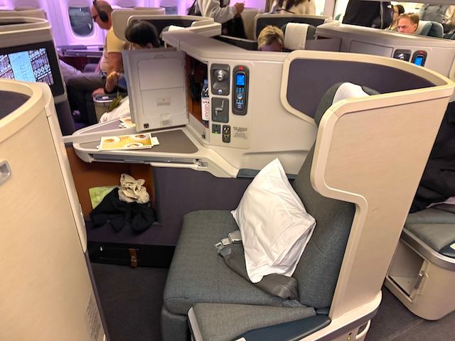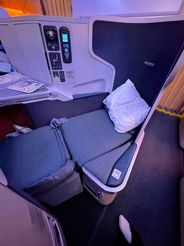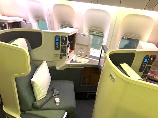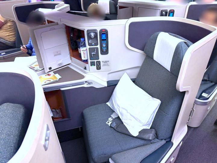 今回搭乗したのは、キャセイパシフィック航空のビジネスクラス。機材はボーイング777型機(777-300ER型機)です。ビジネスクラスの一部では「空飛ぶ美術館」とも言われる「アリア・スイート」を導入。筆者が乗ったボーイング777型機も順次リニューアルされるそうです(アリア・スイートかどうかは「77J」(777‑300ER改修機)と記載があることを確かめましょう)。これから、ますます進化に注目なエアラインです。