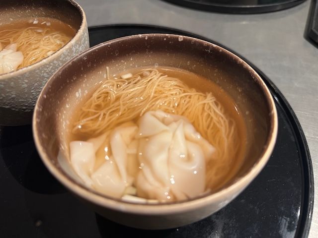 「香港式魚蛋米粉(フィッシュボールライスヌードル)」も人気のメニュー。さっぱりした味わいの中にも出汁の旨みが広がります。ラウンジでここまで本格的な麺料理を味わえるのは、キャセイならではの魅力です。