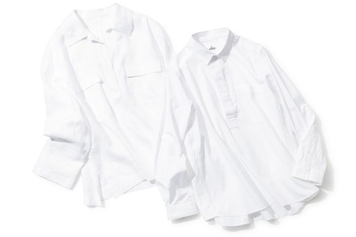 パートナーの服を拝借したような自然なオーバーサイズ、スキッパーがこなれた雰囲気に。シャツ¥72,600(セブリン/アマン)