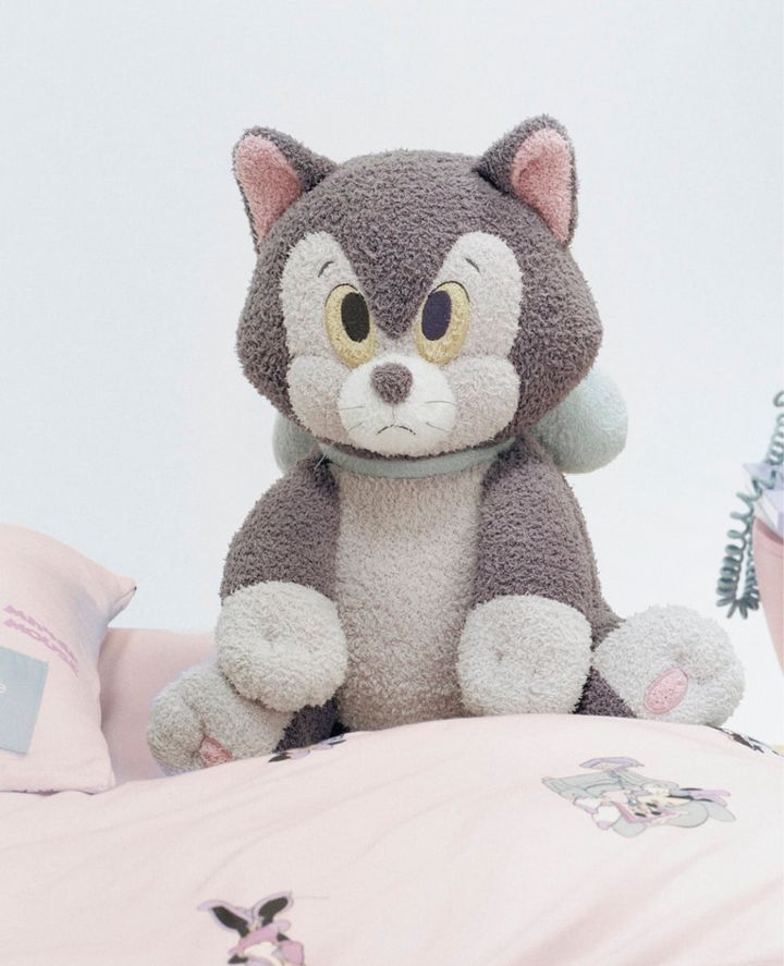 ミニーの愛猫「フィガロ」がもっちり柔らかなクッションに。両脇から腕を差し込んで抱っこできる仕様で、その愛らしさにデスク作業中も癒やされます。