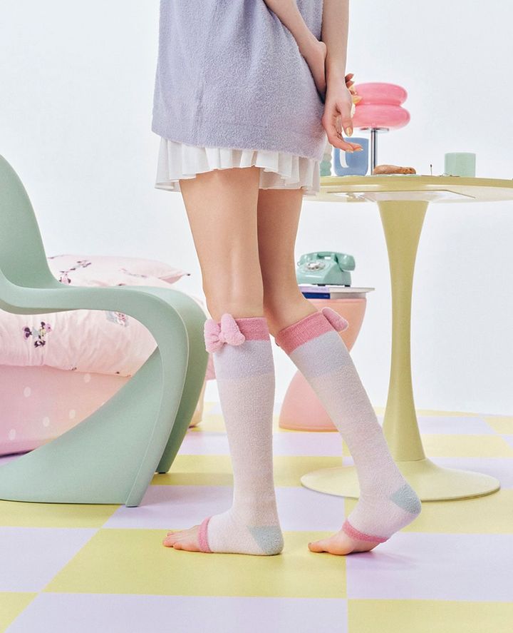 ミニーをイメージしたキュートな配色の着圧ソックスは、滑らかな肌触りが人気の素材“スムーズィー”を使用。両サイドに付いたリボンモチーフもたまりません♡