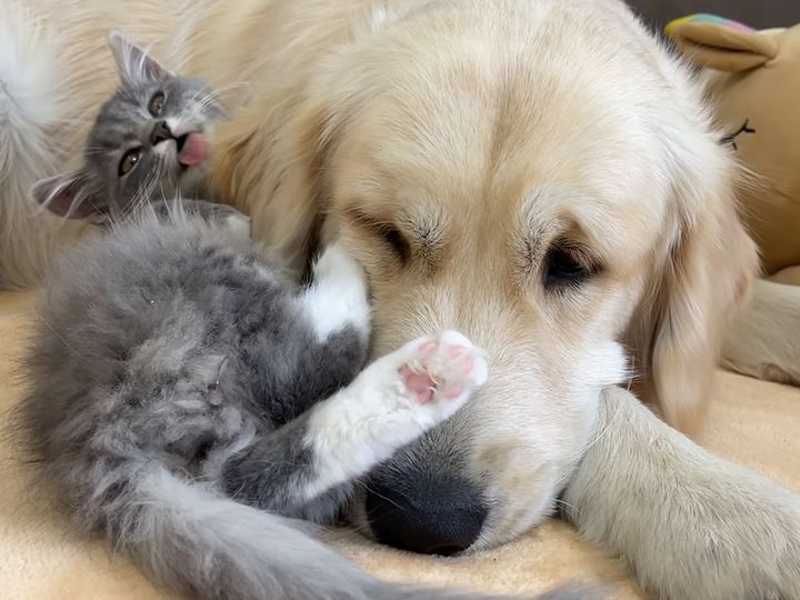 仲良しのゴールデンレトリバーさんと子猫さん。