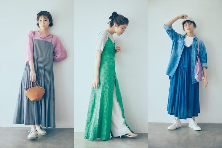 【キャミワンピースのコーディネート】夏から秋まで、カジュアルからフェミニンまで、合わせ方次第で自由自在に大活躍!