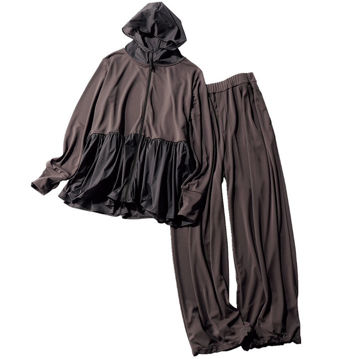ペプラムパーカ¥7,990パンツ¥7,990(ともにアンフィーロ)