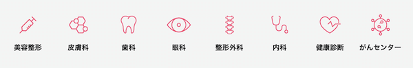 美容整形や美肌治療などを中心として、審美歯科治療やAGAなどの専門的な分野も幅広く取り扱っている。