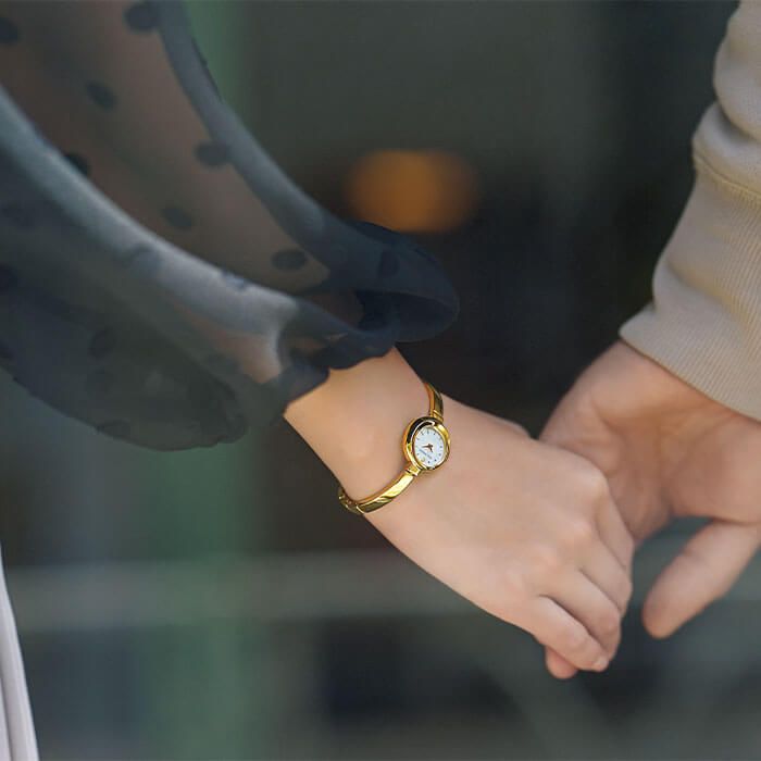 3. デートにつけていきたい腕時計はこれ!ジュエリーライクな華奢デザインがフェミニン服にマッチ♡