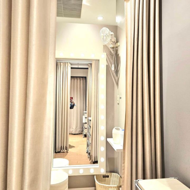 「では試着室に移動しましょう。上着を脱いでいただければ大丈夫です」え、服を着たまま? 今日、デニムにデニムジャケットに、Tシャツなんですけど。「そのままで大丈夫ですよ」へー、不思議ー。ジャケット脱ぎましたー!
