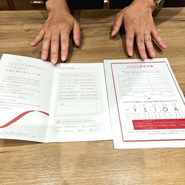 全国のトリンプのお店、またはアモスタイルのお店で行っているサービスで、フィッティングのプロが無料で骨格やサイズを診断し、試着を重ねることでぴったりの下着を一緒に見つけてくれるんです。脱がなくてOK! 服の上から採寸し、トリンプ独自の「Y」「S」「I」「O」「A」の5つのボディタイプを診断してくれます。当日駆け込みでも空きがあれば受け入れてくれますが、とても人気のサービスなので、できればトリンプ公式サイトから日時を予約して店舗に伺いましょう。サイズ診断は無料で、商品を買う必要もありませんから、下着迷子がこのサービスを利用しない手はない!