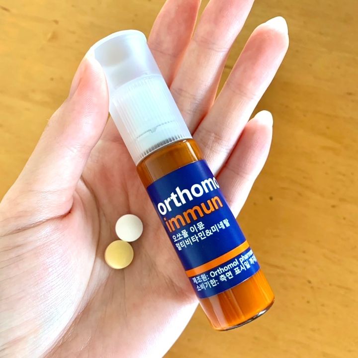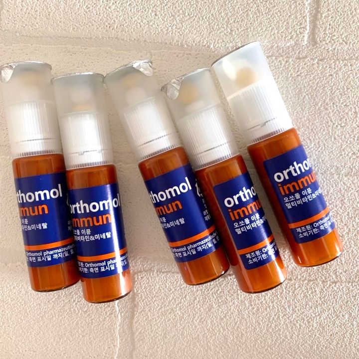 ドイツ発の本サプリ、正式名称はorthomol(オーソモル)IVEウォニョンやRed Velvetウェンディが愛飲していることで話題に!瞬く間に韓国で大バズりした後、昨年12月に日本上陸!!日々不足しがちなビタミン、ミネラルなど20種類以上もの栄養素を1本で摂取できる優れもの。ドイツ製品は上部のキャップに2つ錠剤が入っています。