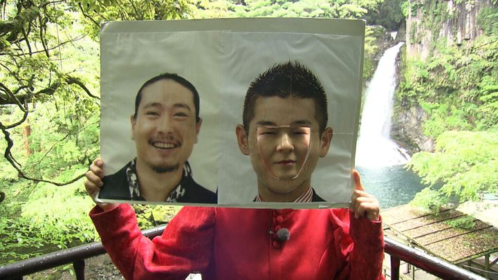 ゆにばーす・はらは、静岡県賀茂郡河津町で相席旅を敢行! 観光名所の河津七滝に現れ、おなじみの顔パネル芸でオープニング。食堂で河津の名物、わさび丼を味わい、食堂の人に教えてもらった爬虫類や両生類を展示する動物園へ。