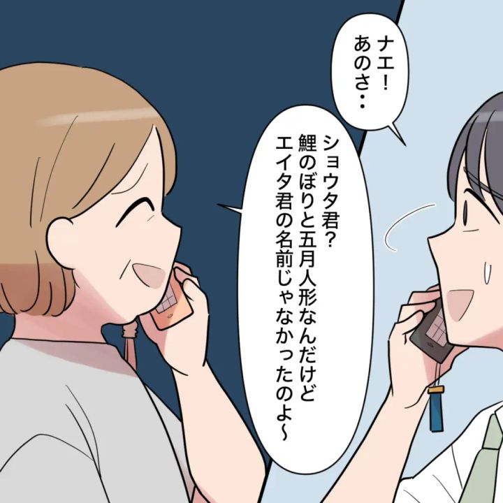 ナエさんが電話に出てくれたと思ったショウタさんが「ナエ!あのさ・・」と話し出すと、「ショウタ君?鯉のぼりと五月人形なんだけど、エイタ君の名前じゃなかったのよ~」と穏やかに言ったのはナエさんのお母さんでした。