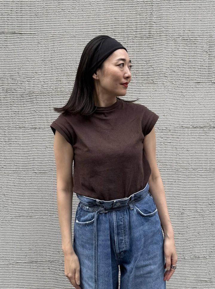 3. 【40代スナップ】上半身が華奢見えする!「こげ茶のコンパクトT」に注目|高橋寿絵さん
