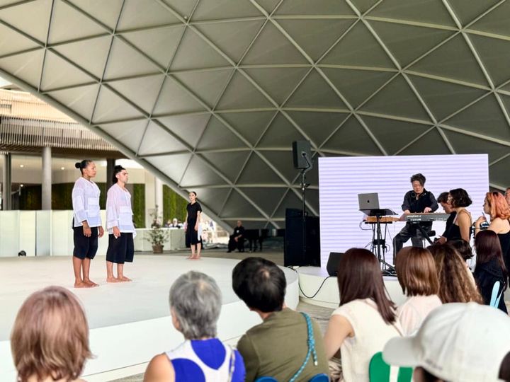 大屋根では、アートパフォーマンスやトークイベントなどが行われていました。朝イチには、御大・安藤忠雄先生が登場(ただし撮影NG)。