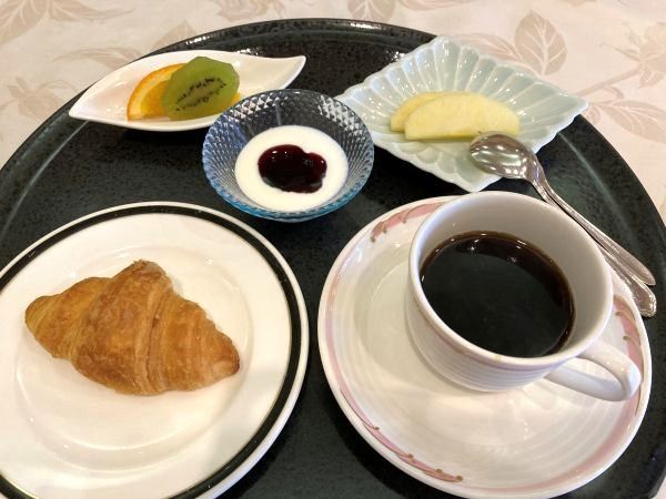締めはクロワッサンとコーヒーで…食べ過ぎです。