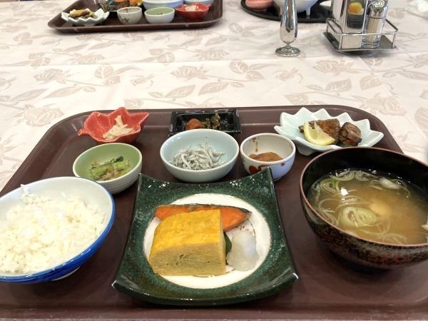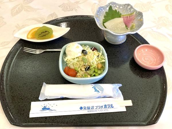 朝食は、お刺身・サラダ・小鉢にハーフバイキングというスタイルでした。