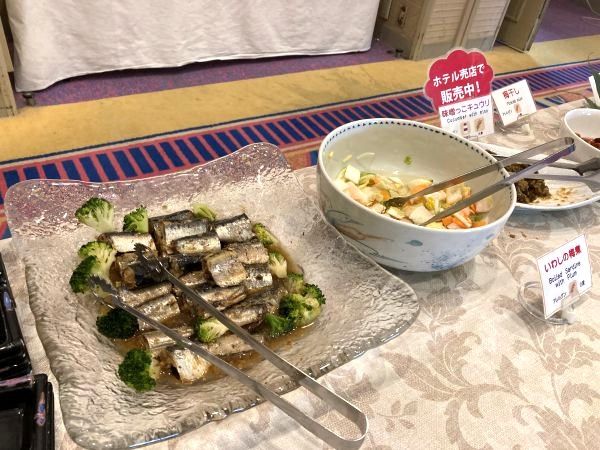 ハーフバイキングは野菜の小鉢や魚料理などの和食メニューに、洋食メニューもありました。
