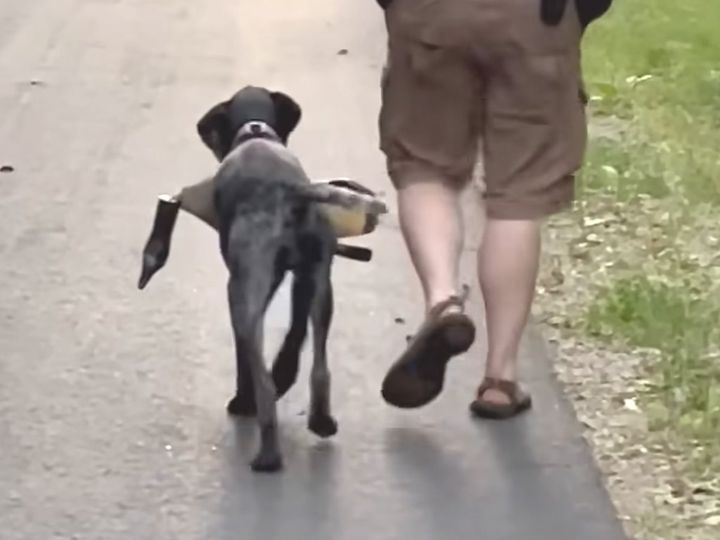 「一緒に帰ろう」飼い主さんに歩調を合わせる犬さんの優しさにきゅん