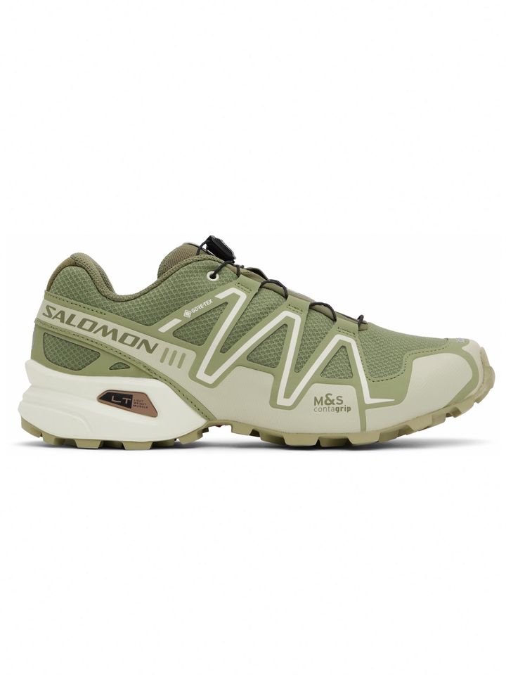 今やストリートの定番シューズブランドのひとつとなったサロモンSALOMON)。「スピードクロス 3 ゴアテックス」は、メッシュのアッパーながら防水機能を持つローカット。また、単に防水というだけでなく、全方向にグリップ力を発揮するアウトソールによって、泥道やぬかるみといった柔らかい路面でのトラクションが向上しており、悪天候のアウトドアシーンでの強いお供にもなってくれる。