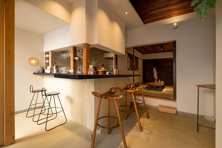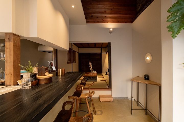 京都の町家は“うなぎの寝床”と呼ばれ、間口が狭く、奥行きが広いのが特徴。「ぽたぽた」の店内も同様で、奥は雰囲気がぐっと変わって和室になっています。