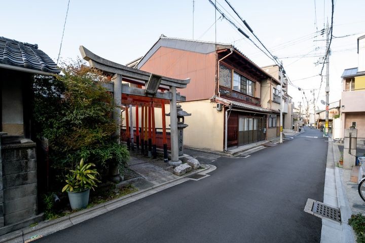 JR二条駅の西口を出て南へ歩き、一筋目の姉小路通を西へ。2車線の道はすぐに1車線の細い道に変わり、左右に昔ながらの面影をとどめた京町家が残る住宅街を進んでいきます。道中にも目移りしそうな魅力的なお店がありますが、もくもくと歩くこと約8分。「正一位月光稲荷大明神」という名前の小さな社(やしろ)が見えてきたら、左に曲がります。
