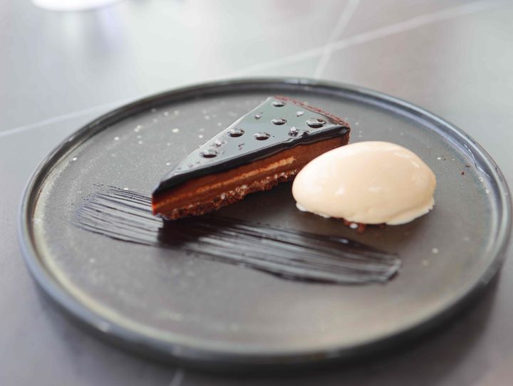 「80%ダークチョコレートタルト」1,600円 は、クラシックな佇まいが印象的なスイーツで、こちらも高い人気を誇ります。