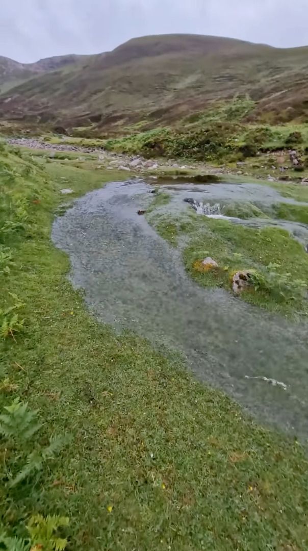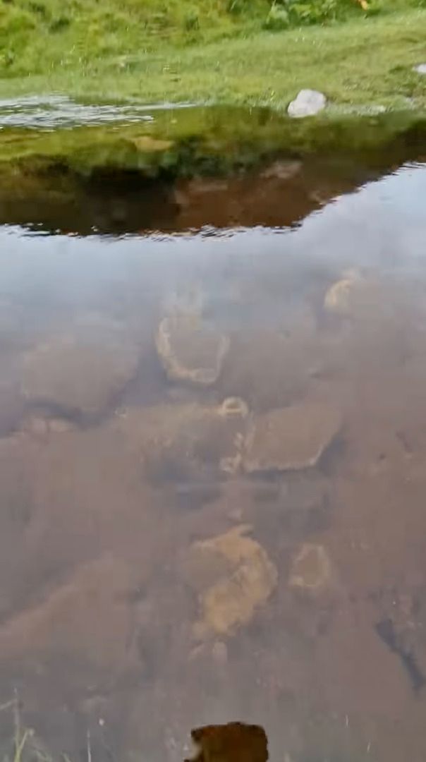 どうやら、男性が発見したこの水流は、大地から湧き出す泉だったようです!! しかも、まだ周辺の草が洗い流されていないところを見ると、最近誕生した湧き水だと推測できます。
