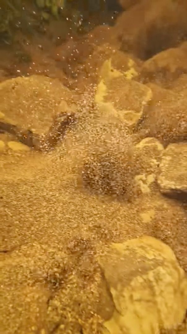 底に溜まった砂が下から上に巻き上げられる様子が、あちらこちらで確認できます。