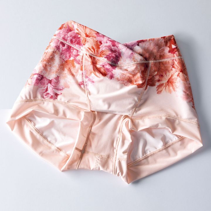 骨盤底筋部分に膣トレスティックを内蔵しているので、穿いているだけで骨盤底筋をトレーニング。クロッチから尻部にかけて尿吸水約40mlの吸収体も。M~L、L~LL 骨盤底筋ケアトレショーツ sara24 ¥7,590(amepla)