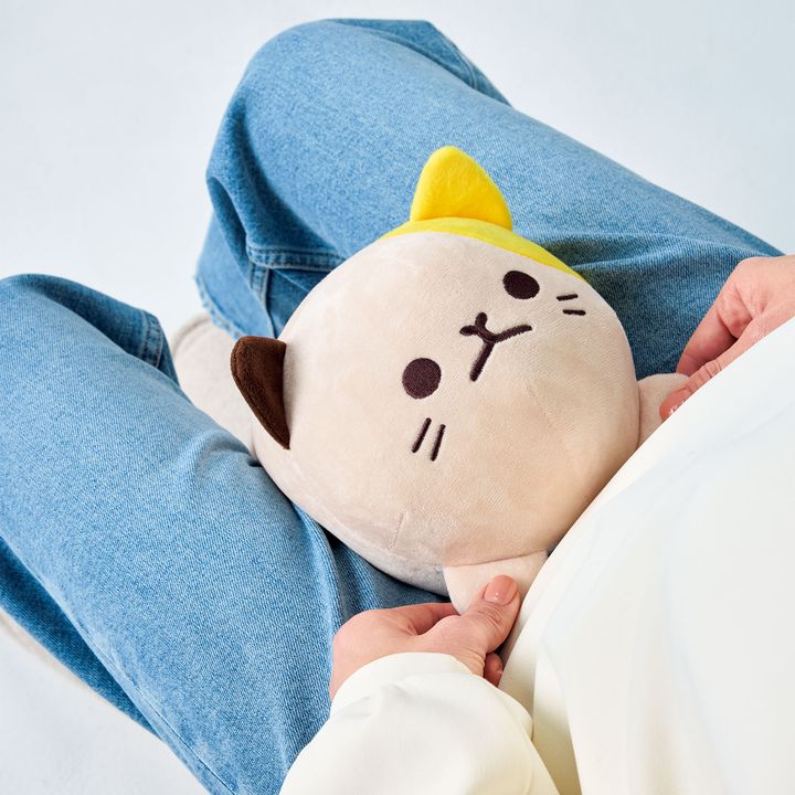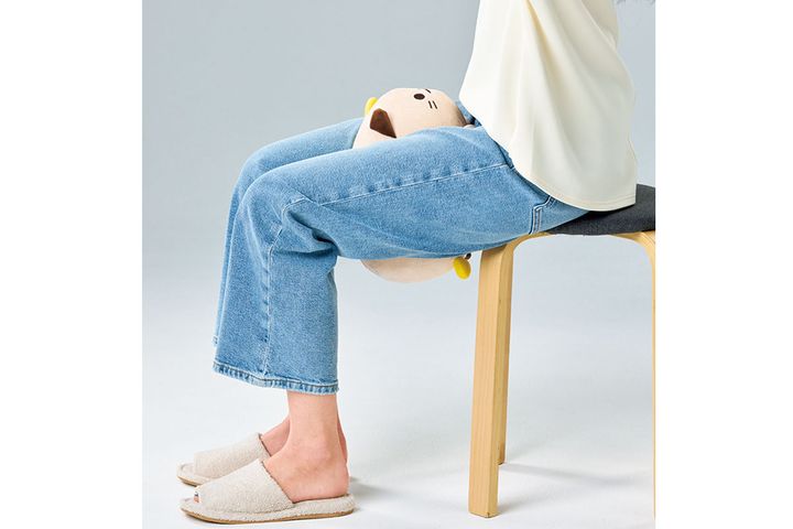 骨盤底筋を鍛えるときは脚の付け根に、内転筋を鍛えるときは膝近くにネコのぬいぐるみを挟みます。3秒かけてギュッと締め付け、3秒かけて緩める動作を1日に10セット。にゃんトレ ミケ 縦27×横15×高さ15cm ¥3,278(サイプラス)