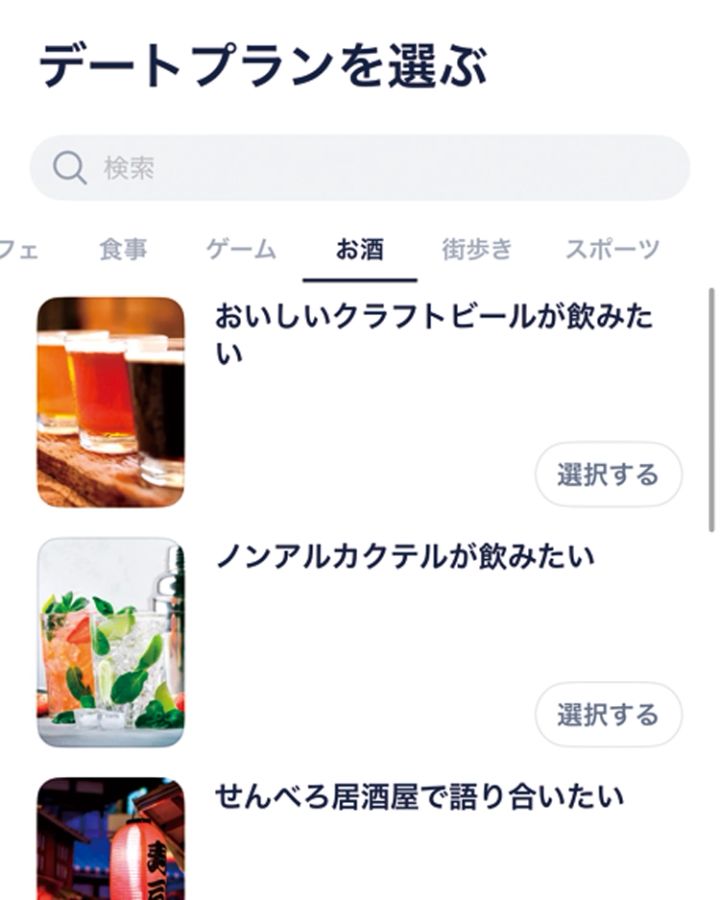 普通のマッチングとは別機能だから、すでにマッチしている人を急に誘うと軽く思われちゃうかもという心配もないし、プランが選べてスムーズ!