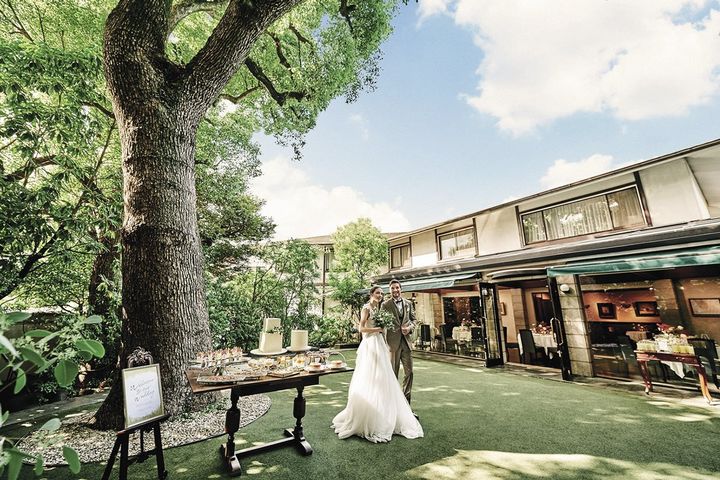 60年以上前に別荘として建てられた邸宅を借り切って、温かみあふれるレストランウェディングを。都内にありながら、ガーデンは300坪もの広大な敷地を誇る。アンティーク家具がクラシカルな雰囲気を醸す場内は、装飾を施さなくても格式高い空間となる点が嬉しい。利用は1日2組限定だから、約5時間を自由自在なタイムテーブルで過ごせる。予算目安は最小規模で92万円~(サ別)/20名