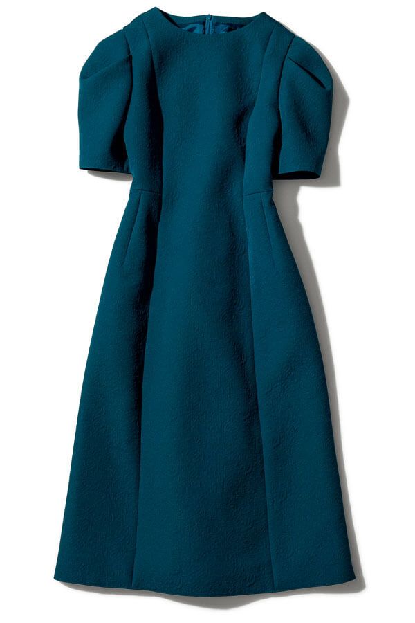 色に深みがあるので、ベーシックカラー感覚の落ち着いた雰囲気を醸し出せるのが優秀。ジャカード素材でクチュールライクに仕立てられた、端正でエレガントなフォルムも魅力です。