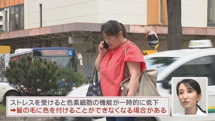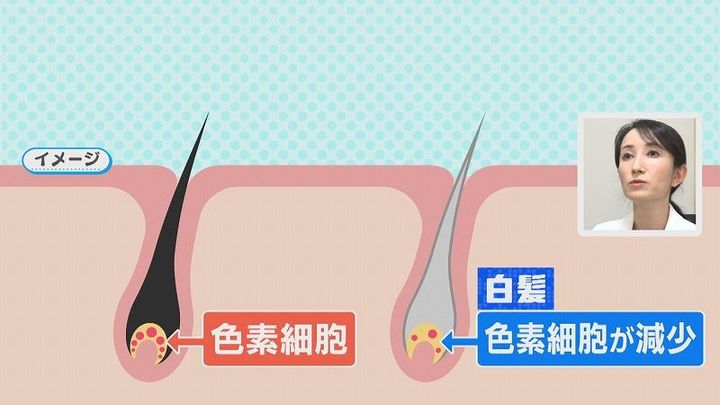 日景先生:「ただ、ストレスを受けると髪の色素細胞の機能が一時的に低下してしまって、髪の毛に色をつけることが出来なくなってしまって白髪になる。頭皮に十分な栄養がいき渡らなくなってしまうので、白髪になるのではないかと考えられています」