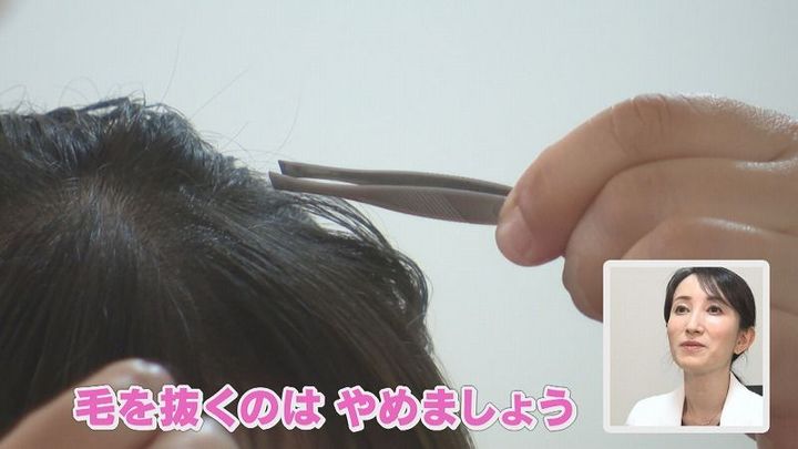 日景先生:「毛根が傷むと新しい髪の毛が生えてこなかったりするので 、毛を抜くのはやめましょう。数が少なければ根本から切って、毛根にダメージを与えないようにするのが大事になります」